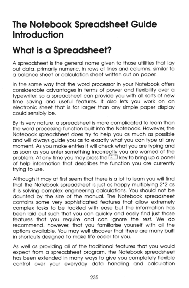SECTION 9 - SPREADSHEET GUIDE - INTRODUCTION