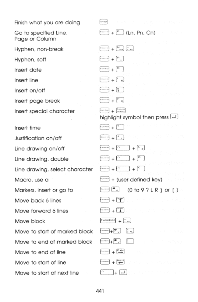 APPENDIX 2 - SUMMARY OF WORD PROCESSOR EDITING COMMANDS