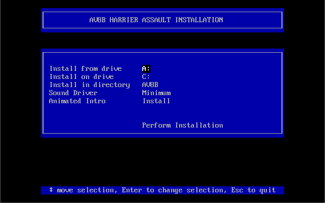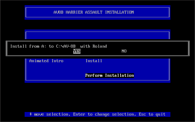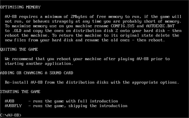 Once installation is complete, you can run the game with AV8B (runs the game with full introduction) or AV8BFLY (runs the game, skipping the intro).