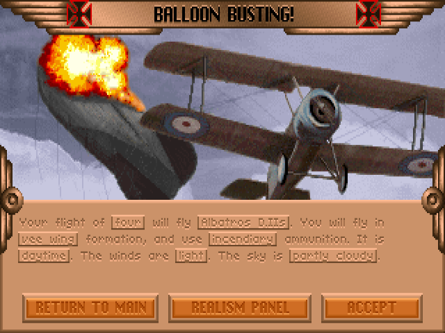 You can fly a single mission or take on the Campaign mode which takes you through each mission back-to-back from 1915 to 1918. As you succeed in each, you will be promoted up the ranks and be eligible for awards and medals.
