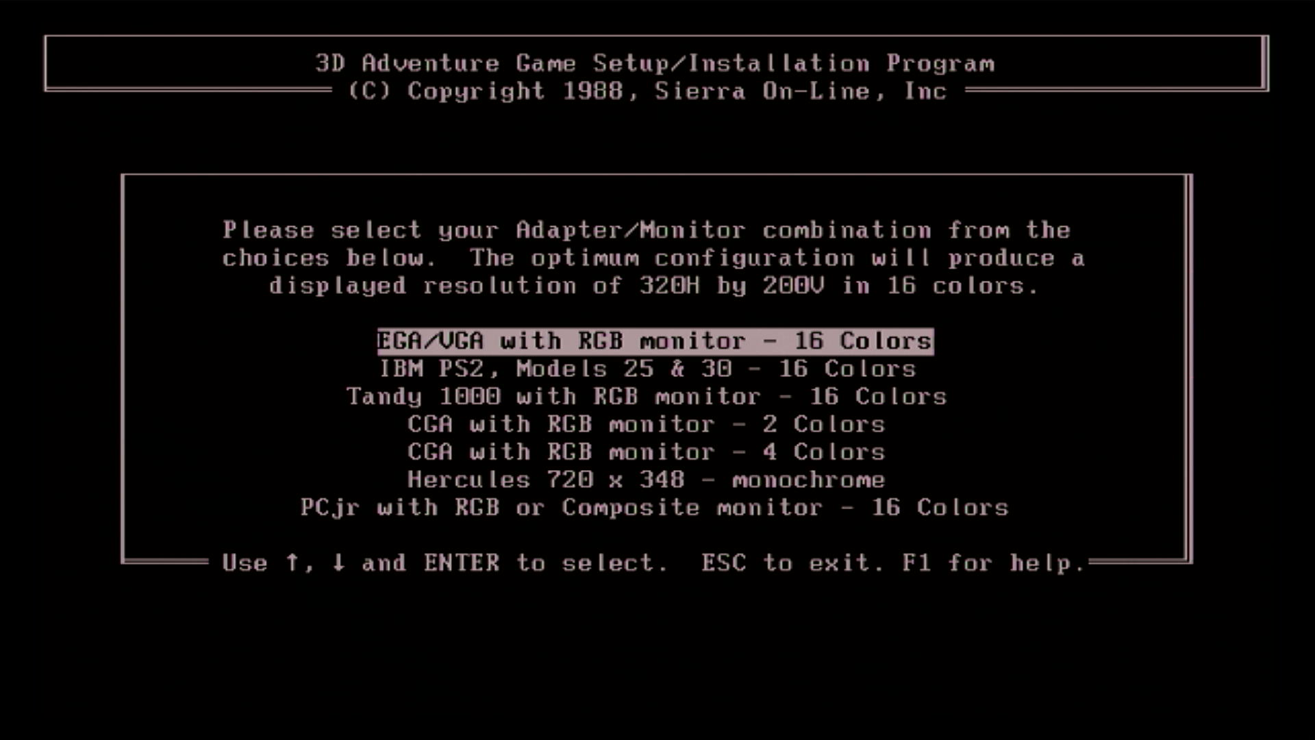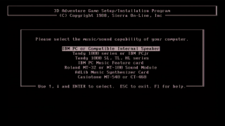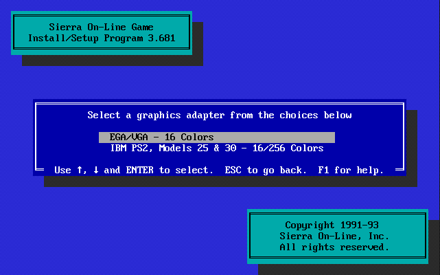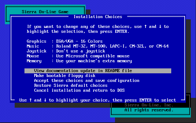 To configure the game for your hardware, run the provided INSTALL.EXE utility. There are two main versions of the INSTALL utility, one which is black & white, and the later one that's in colour.