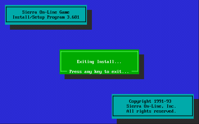 1.0U 13th April 1989 This [unreleased?] version got an early Sierra installer (the black & white one that's about 20KB in size), and SCI Interpreter version 0.000.453.