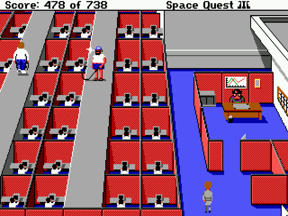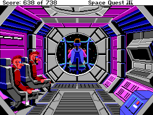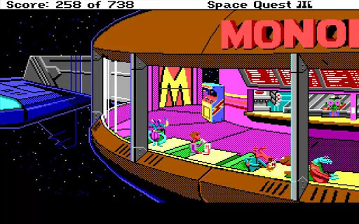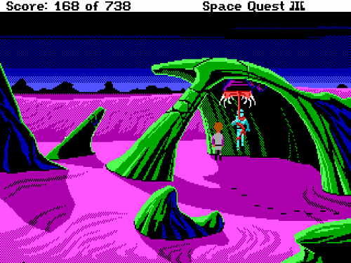 One of Sierra On-Line's first games to use their new SCI interpreter, Space Quest III features basic mouse controls, a much improved text parser (the last of this series to use a parser), and audio support for the Sound Blaster and Roland MT-32.