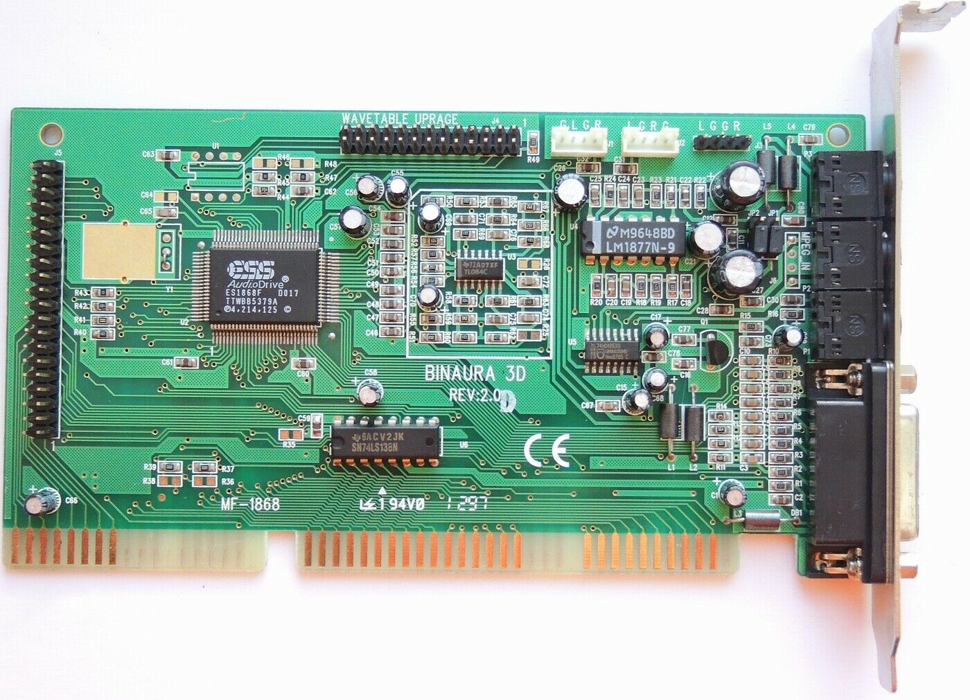 The ES1868 card is low-noise card that supports up to SB Pro 2.0 gaming, considered one of the best DOS gaming cards. It has an IDE header onboard as well as a wavetable header which does not suffer from any bugs like SB card hanging notes bug.