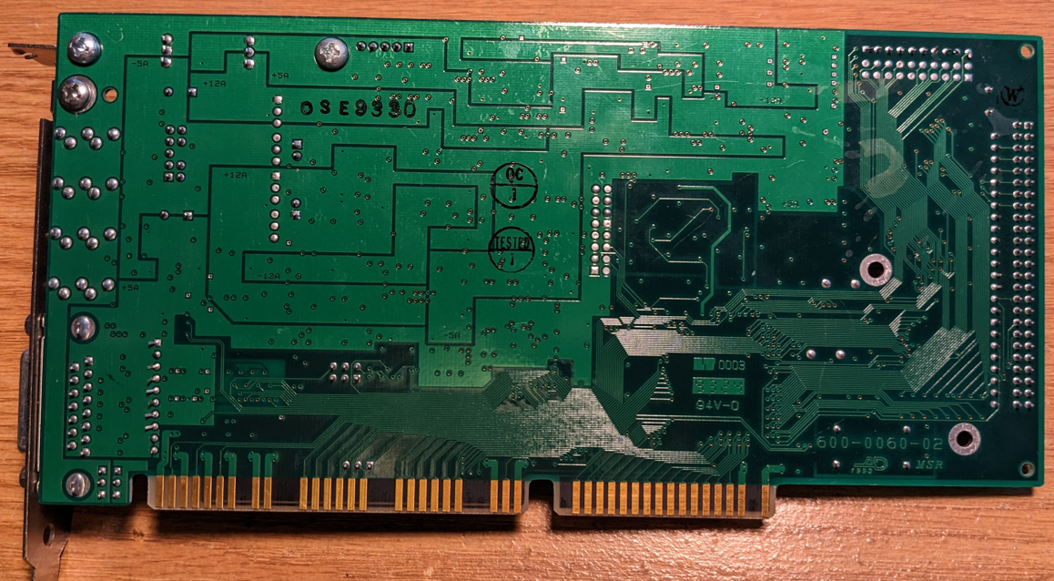 There was also a more enhanced card, the 16-bit ISA Multiwave Innovation Audiowave 16 AISP (SCSI) (FCC ID: KLZ1005I), which had the Thunder Board chip, but also had a Crystal CS4231-KL, Media Vision MVD121 chip (possibly a later version of the chip used on the Jazz16 MVD1216?), and a real Yamaha YMF262, plus a SCSI port. This card supports Ad Lib, Sound Blaster, Thunder Board, Sound Blaster Pro and Windows Sound System.