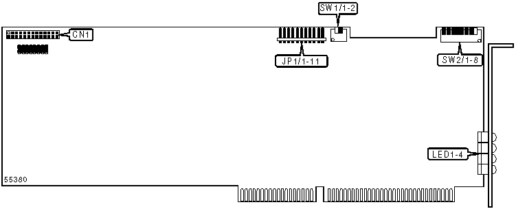Note: A total of 255 base address settings are available. The switches are a binary representation of the decimal memory addresses. SW1/8 is the Most Significant Bit and switch SW1/1 is the Least Significant Bit. The switches have the following decimal values: SW1/8=32768, SW1/7=16384, SW1/6=8192, SW1/5=4096, SW1/4=2048, SW1/3=1024, SW1/2=512, SW1/1=256. Turn off the switches and add the values of the switches to obtain the correct memory address. (Off=1, On=0) | |||||||