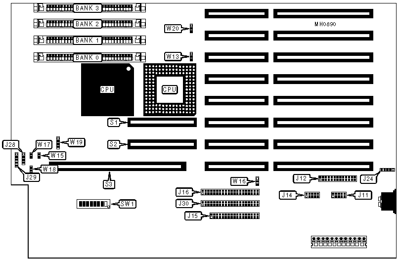 32-bit external cache memory card slot, floppy interface, IDE interfaces (2), parallel port, serial port (2), VESA local bus slots (2) |
