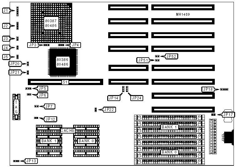 Note:Pins designated should be in the closed postion. The locations of jumpers JP1 and JP2 are unknown. | ||||||||