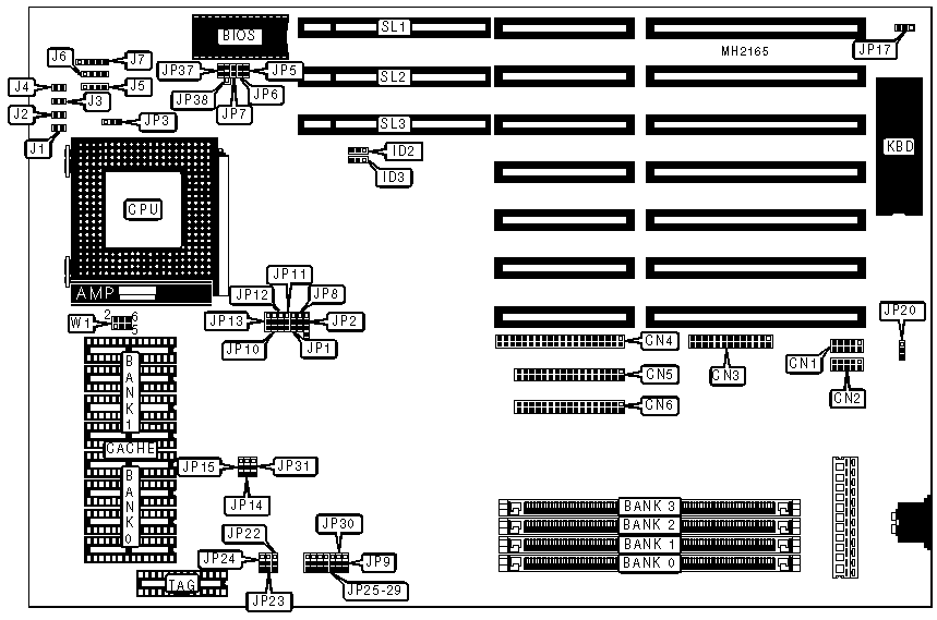 32-bit VESA local bus slots (3), floppy drive interfaces (2), green PC connector, IDE interface, parallel port, serial ports (2) |