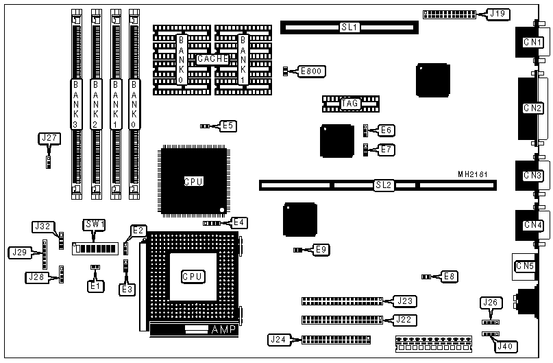 Floppy drive interface, IDE interfaces (2), parallel port, PS/2 mouse port, serial ports (2), VGA feature connector, VGA port |