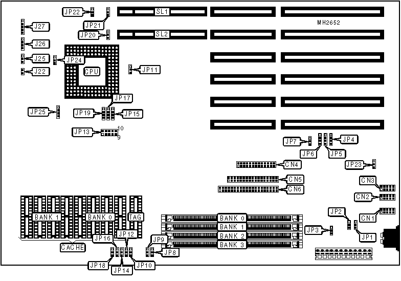 32-bit VESA local bus slots (2), floppy drive interface, IDE interface, parallel port, PS/2 mouse interface, serial ports (2) |