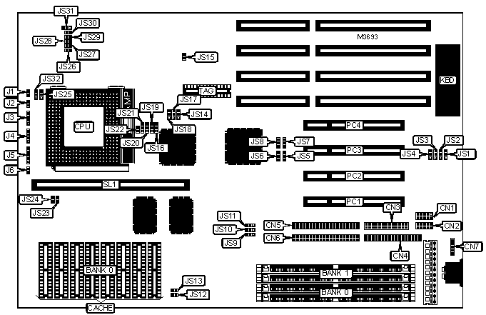 Note: Board accepts EDO memory. Board also accepts x 32 SIMMs. | ||
