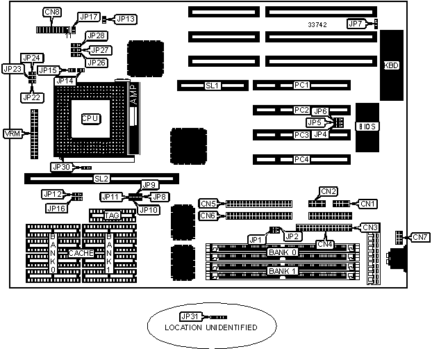 Note: Board accepts EDO memory. Board also accepts x 36 SIMMs. Banks are interchangeable.