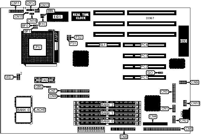 Note: Board accepts EDO memory. Board also accepts x 32 SIMMs. |