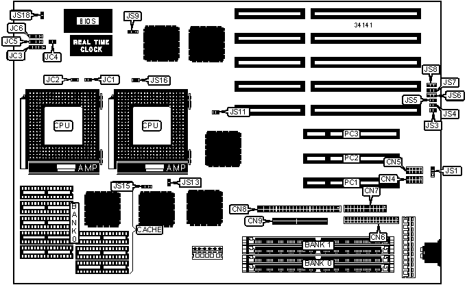 32-bit PCI slots (3), floppy drive interface, SCSI-2 interface, Wide SCSI-2 interface, parallel port, serial ports (2) |