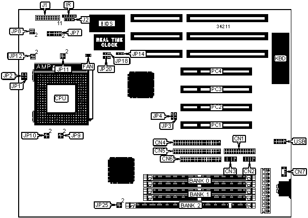 Note: Board accepts EDO memory. Board also accepts x 32 SIMMs.