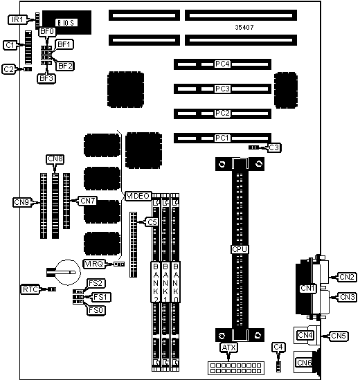 32-bit PCI slots (4), floppy drive interface, green PC connector, IDE interfaces (2), parallel port, PS/2 mouse port, serial port, VGA port, IR connector, USB connectors (2), ATX power connector, AMC connector |