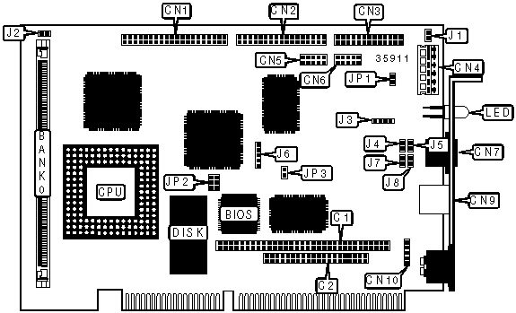 Ethernet 10BaseT connector, floppy drive interface, IDE interface, parallel port, serial ports (2), PC/104 connectors (2) |
