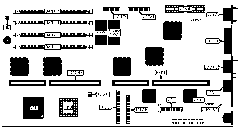 Bus mouse, cache card/shunt card slot, floppy interface, IDE interface, parallel port, riser card slot, serial ports (2), VGA port |