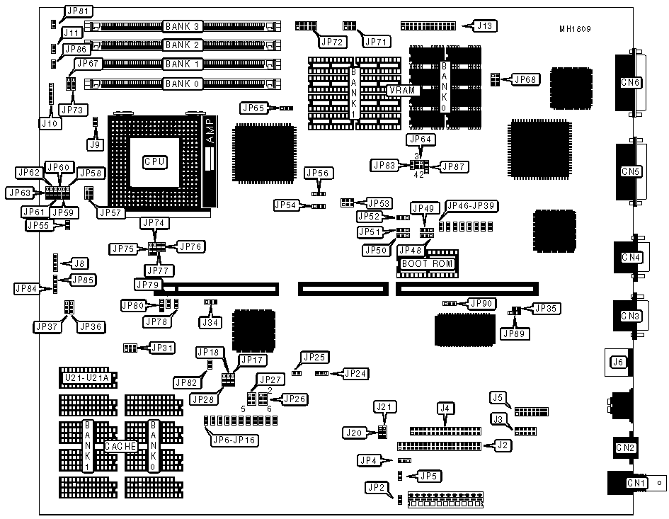 Note:When using the built-in VESA VL-bus VGA, pins 1 to 8 should be set to match the refresh rates of the monitor attached to the G486ECV-AIO. |