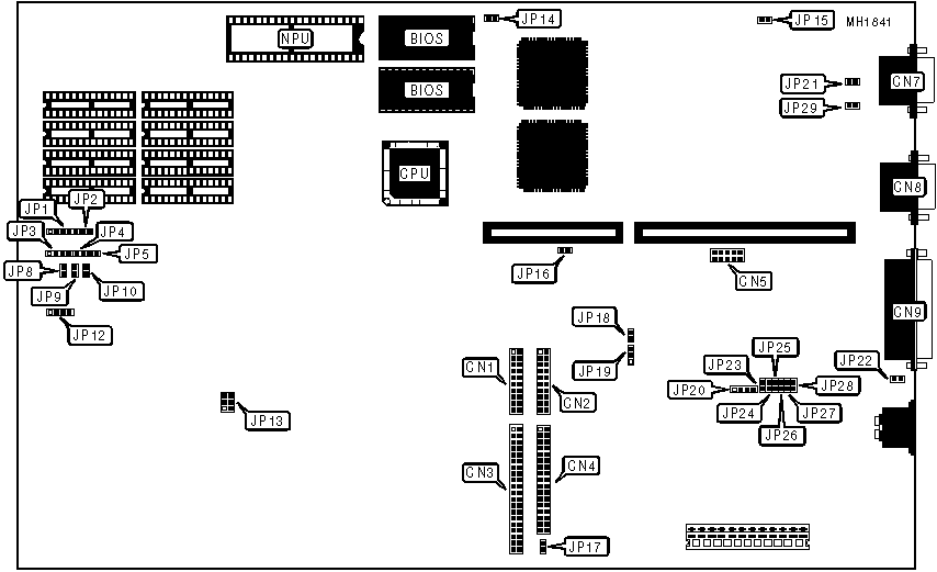 Floppy drive interface, hard drive interface, parallel port, serial ports (2), video port |