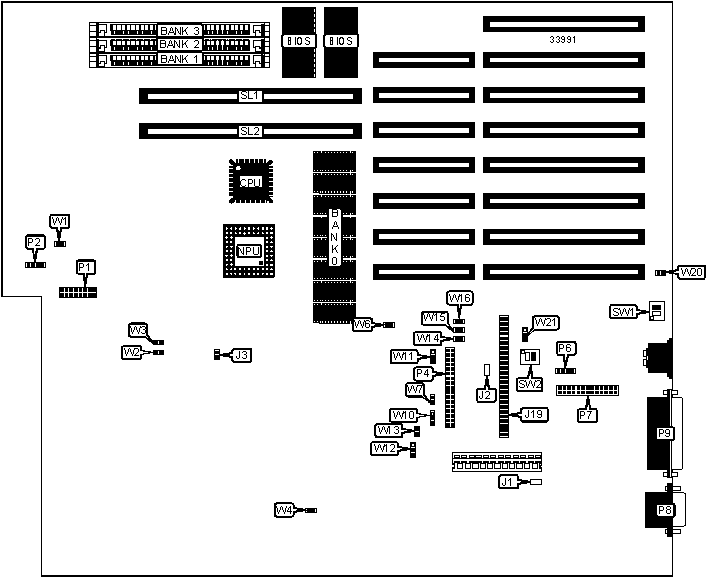 External memory slots (2), floppy drive interface, SCSI interface, parallel port, serial ports (2)