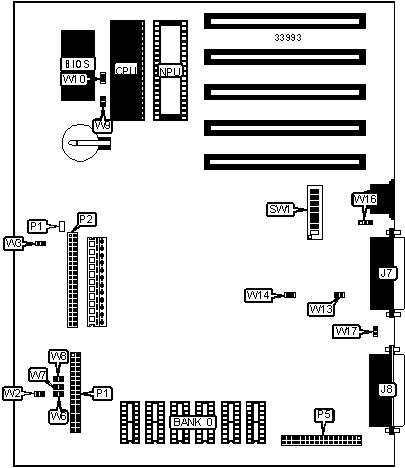 Floppy drive interface, IDE interface, parallel port, serial ports (2)