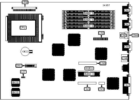Note: 1MB video memory is factory installed and is not configurable. To increase to 2MB, install upgrade module at CN9. |