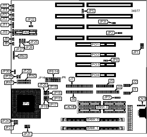 32-bit PCI slots (4), floppy drive interface, IDE interface (2), parallel port, serial ports (2), PS/2 mouse connector, green PC connector |