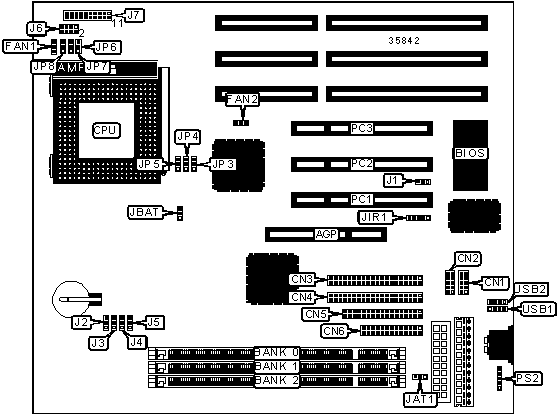 32-bit PCI slots (3), floppy drive interface, IDE interfaces (2), parallel port, PS/2 mouse interface, serial ports (2), IR connector, USB connectors (2), ATX power connector, AGP slot, wake on LAN connector |