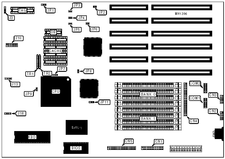 Floppy drive interface, front panel connector, IDE interface parallel port, serial ports (2) |