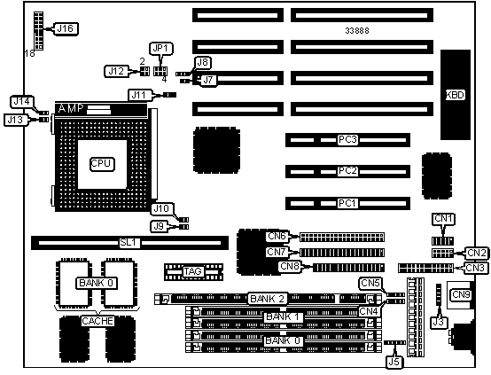Note: Board accepts EDO memory. Board also accepts x 32 SIMMs. | |||