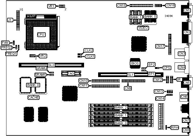 CD-ROM audio in, floppy drive interface, audio/game port, green PC connector, IDE interfaces (2), parallel port, PS/2 mouse port, serial ports (2), VGA feature connector, VGA port, riser slot, cache slot, IR connector, USB connectors (2), speaker out, microphone in, wavetable connector, local peripheral bus connector