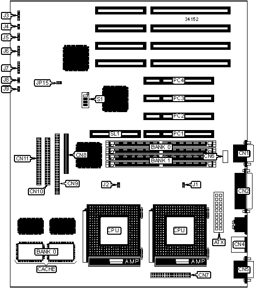 32-bit PCI slots (4), floppy drive interface, green PC connector, IDE interfaces (2), Ultra SCSI interface, Ultra Wide SCSI interface, parallel port, PS/2 mouse port, serial ports (2), IR connector, USB connector, ATX power connector, RAID slot |