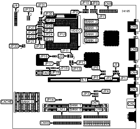 Floppy drive interface, green PC connector, IDE interfaces (2), parallel port, PS/2 mouse interface, serial ports (2), VGA feature connector, VGA port, riser slot, IR connector |