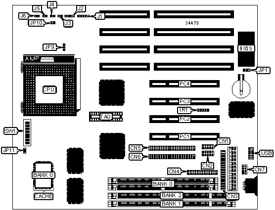 Note: Board accepts EDO memory. Memory installed in Banks 1 & 2 is interchangeable. | ||