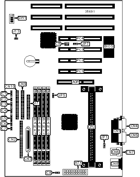 32-bit PCI slots (4), floppy drive interface, green PC connector, IDE interfaces (2), SCSI interface, Wide Ultra SCSI interfaces (2), parallel port, PS/2 mouse port, serial ports (2), IR connector, USB connectors (2), ATX power connector, AGP slot, SB-link connector, wake on LAN connector |