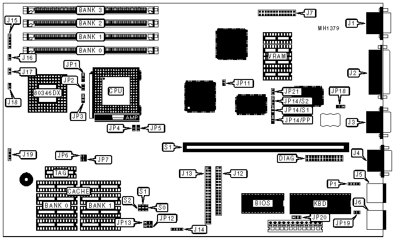 16-bit riser card slot, bus mouse port, diagnostic port floppy drive interface, IDE interface, parallel port, PS/2 style keyboard serial ports (2), VGA feature connector, VGA port |