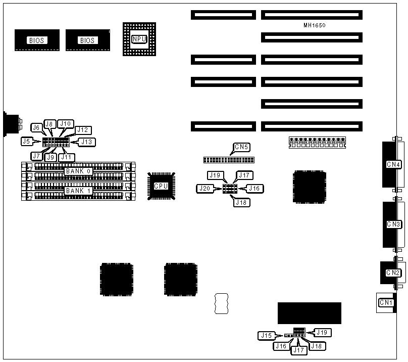 Floppy drive interface, mouse port, parallel port, serial ports (2) |