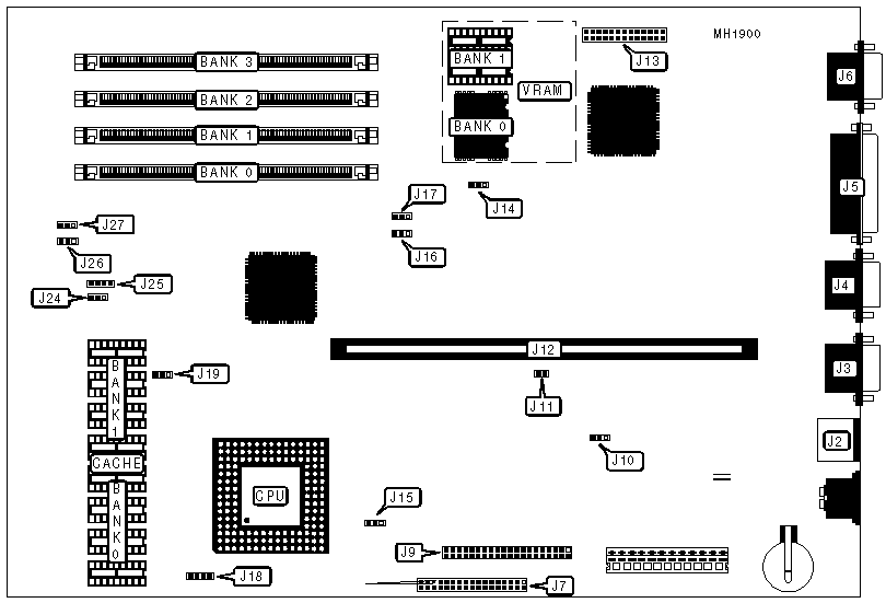 32-bit riser card slot, floppy drive interface, hard drive interface, parallel port, PS/2 mouse port, serial ports (2), video port |