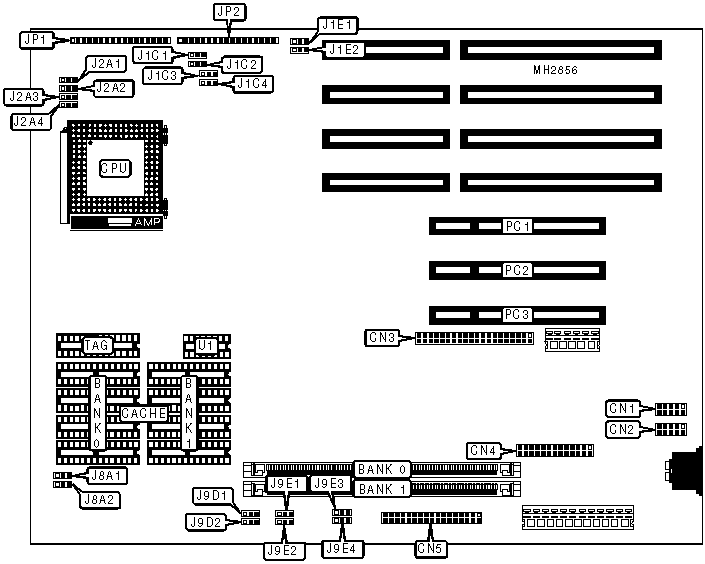 Parallel port, serial ports (2), 32-bit PCI slots (3), floppy drive interface, IDE interface |