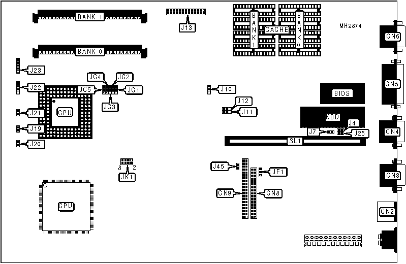 PS/2 mouse port, parallel port, serial ports (2), VGA port, VGA feature connector, floppy drive interface, IDE interface, riser slot