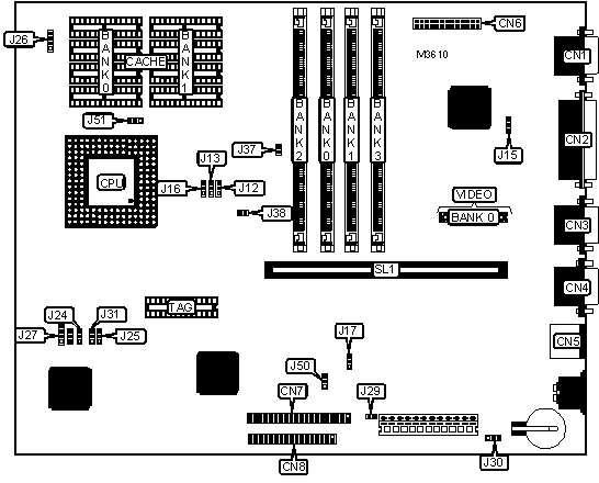 Floppy drive interface, IDE interface, parallel port, PS/2 mouse port, serial ports (2), VESA feature connector, VGA port, riser slot, |