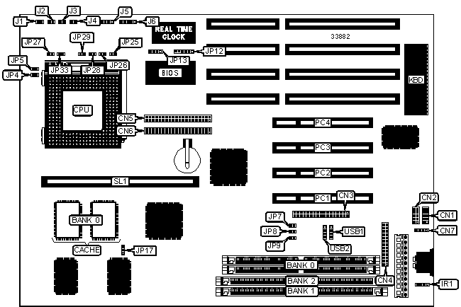 32-bit PCI slots (4), floppy drive interface, IDE interfaces (2), parallel port, PS/2 mouse interface, serial ports (2), cache slot, IR connector, USB connectors (2) |
