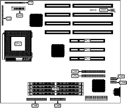 32-bit PCI slots (3), floppy drive interface, green PC connector, IDE interfaces (2), parallel port, serial ports (2), IR connector |