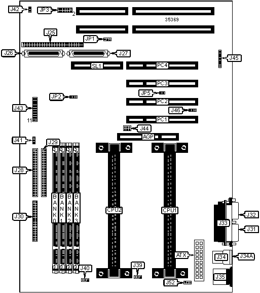 32-bit PCI slots (4), floppy drive interface, IDE interfaces (2), SCSI interface, Wide Ultra SCSI interfaces (2), parallel port, PS/2 mouse port, serial ports (2), IR connector, USB connectors (2), ATX power connector, AGP slot, RAID slot |