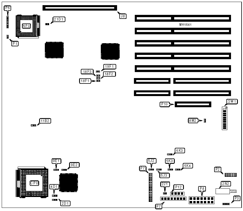 Note: Either a proprietary system memory card or a proprietary memory bus expansion card may be installed at J8. The proprietary memory bus expansion card has four slots that may be populated by up to four 2MB expansion cards. |