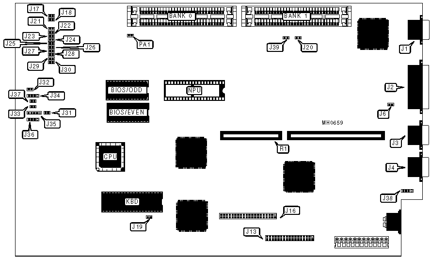Floppy drive interface, IDE interface, parallel port, serial ports (2), VGA port |