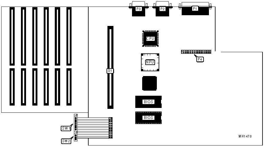 32-bit external memory slot, floppy drive interface, parallel port, serial port (2) |
