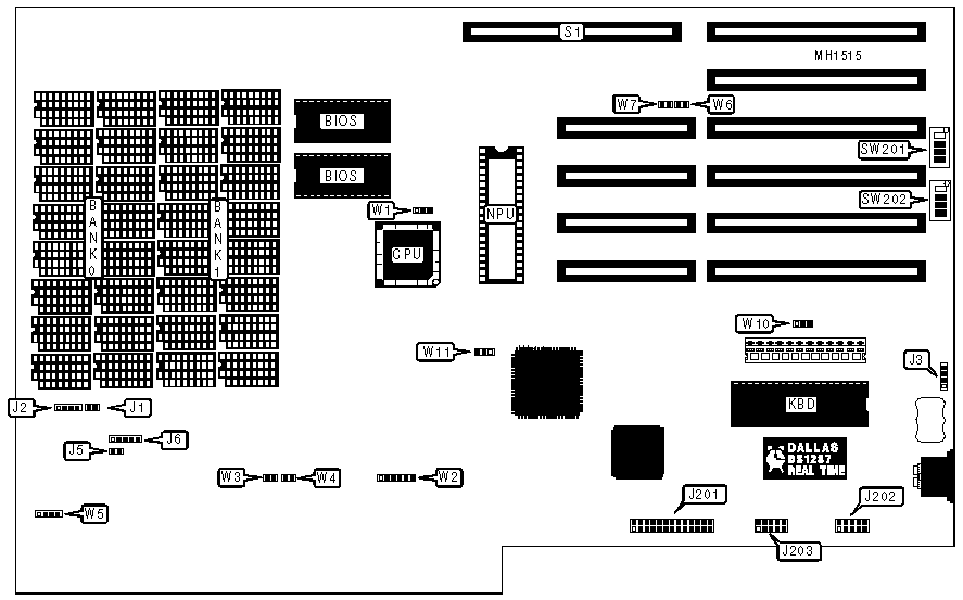 16-bit onboard bus memory slot, parallel port, serial port (2) |
